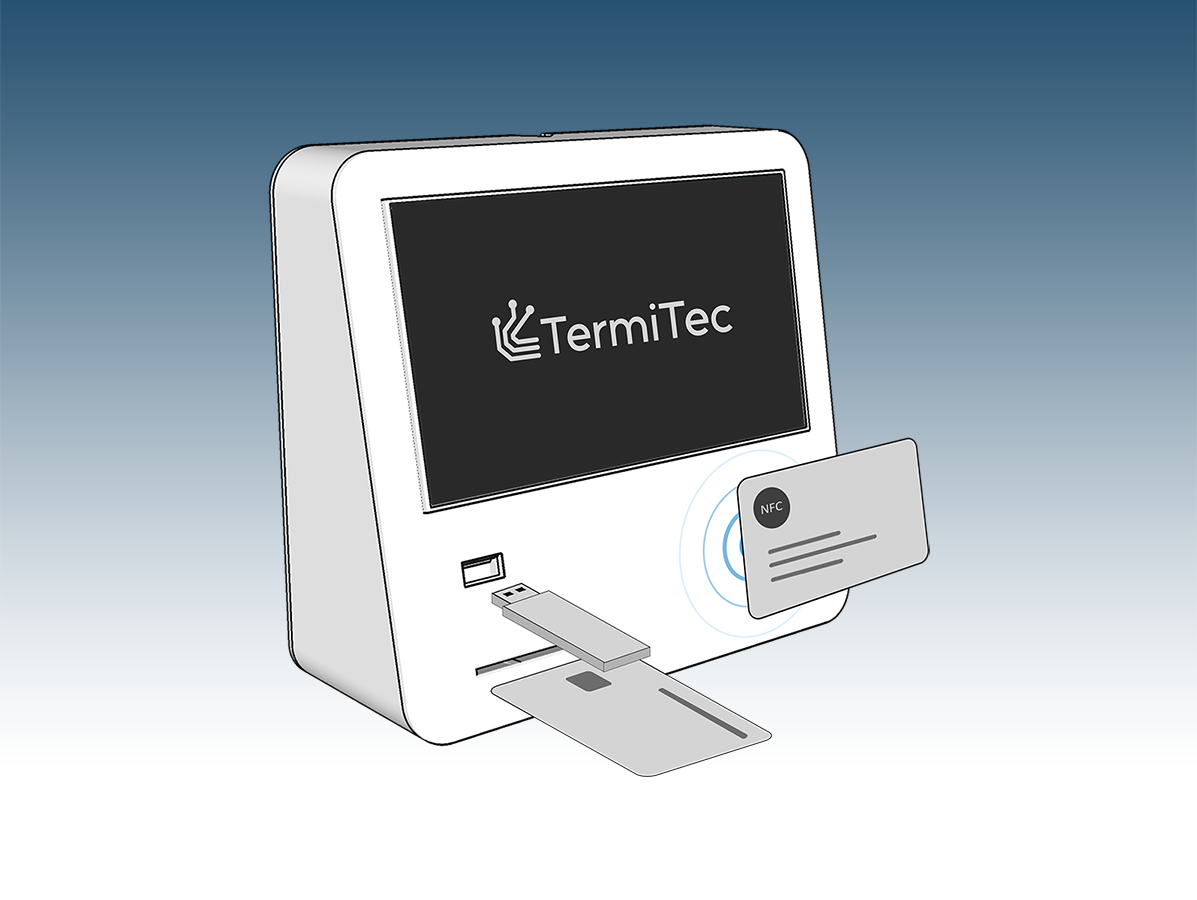 Das TermiTec C1P liest Fahrerkarten aus, übernimmt Dateien von einem Downloadgerät und liest NFC-Labels für die elektronische Führerscheinkontrolle. Das Hochladen der Dateien kann automatisch per HTTPS, WebDAV, auf einen FTP/S-Server oder auf eine SMB/CIFS-Netzwerkfreigabe vorgenommen werden.